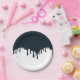 Un chaos élégant rencontre une élégance immaculée. Cette assiette en papier personnalisable de 7 pouces présente un design audacieux en gouttes où un bruit de charbon texturé cascade de manière spectaculaire sur un fond blanc impeccable. C'est comme une fuite cosmique figée en plein mouvement — audacieux, moderne et impossible à ignorer.
