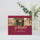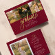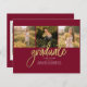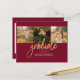 Graduation 4 Photo Collage Script Bourgogne Gold Budget carte. Customisez facilement en changeant le texte et en remplaçant les photos par les vôtres. Une façon moderne et moderne d'annoncer votre diplôme cette année!