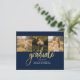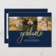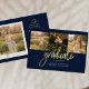 Graduation 4 Photo Collage Script Marine Gold Budget carte de Faire-part. Customisez facilement en changeant le texte et en remplaçant les photos par les vôtres. Une façon moderne et moderne d'annoncer votre diplôme cette année!