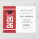 Ajoutez votre année de graduation, le nom et les détails du lieu avec date à cet arrière - plan moderne en rouge et blanc avec l'invitation de la soirée de graduation de la typographie noire en utilisant notre bouton "Personnaliser" ci-dessus