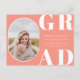 Cadre photo avant arrondi, faire-part/invitation de remise de diplômes de classe supérieure. Arrière - plan de couleur rose pêche, en gras blanc "GRAD" et en modèle texte pour le nom du diplômé, la classe de l'année et l'école. Le dos de la carte comporte des lignes de texte supplémentaires pour des informations sur la partie ou d'autres informations sur le diplômé.