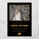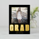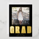 Classe GRAD 2025 moderne et élégante en feuille d'or avec faire-part de graduation photo. Célébrez vos réalisations grâce à notre faire-part de graduation en feuille d'or. Ce design moderne et élégant met en valeur le mot "GRAD" en feuille d'or, ajoutant une touche de sophistication. La faire-part comprend également un ensemble photo captivant contre un arrière - plan noir élégant, créant un contraste saisissant. Sur le dos, vous trouverez une autre photo chère et tous les détails importants de l'obtention du diplôme, assurant que cette faire-part devient un gardien chéri pour les années à venir. La couverture a été conçue à l'aide de certains actifs de Freepik.com