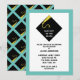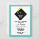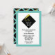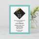 Invitations de graduation créative avec casquette noir classique et motif de design de gossel or sur arrière - plan bleu turquoise.