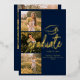 Graduation 4 Photo Collage Script Marine Blue and Gold Faire-part pour la classe de 2025. Customisez facilement en changeant le texte et en remplaçant les photos par les vôtres. Une façon moderne et moderne d'annoncer votre diplôme cette année!
