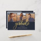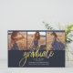 Graduation 4 Photo Collage Script Purple Gold Budget carte. Customisez facilement en changeant le texte et en remplaçant les photos par les vôtres. Une façon moderne et moderne d'annoncer votre diplôme cette année!