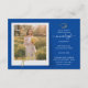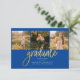 Graduation 4 Photo Collage Script Blue Gold carte Faire-part. Customisez facilement en changeant le texte et en remplaçant les photos par les vôtres. Une façon moderne et moderne d'annoncer votre diplôme cette année!