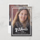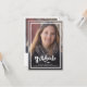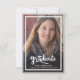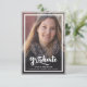 Un élégant script moderne et audacieux avec deux photos Graduation Faire-part. Doté d'une photo pleine dimension sur le devant avec une superposition de texte blanc et d'une photo sur le côté arrière avec des détails optionnels.