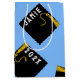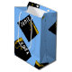 Sacoche-cadeau créative avec capuchon de graduation noir et or sur arrière - plan bleu clair. Modifier le texte pour ajouter son nom et son année de classe supérieure.