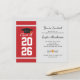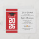Ajoutez votre année de graduation, le nom et les détails du lieu avec date à cet arrière - plan moderne en rouge et blanc avec l'invitation de la soirée de graduation en typographie noire en utilisant notre bouton "Personnaliser" ci-dessus.