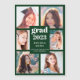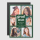 Envoyez à votre famille et à vos amis une carte de graduation personnalisée et moderne pour les wow. Ce design modèle moderne comprend six photos que vous pouvez changer à votre propre encadré en vert. Au centre de la typographie blanche est le mot "Grad" avec l'année, votre nom et l'école à personnaliser. Le dos de la carte est vert. Conçu par Susan Coffey.