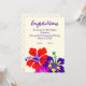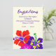 Unique and colorful graduation announcement with hibiscus flowers art. Ecru color with dark purple text and floral art design at the bottom. Fill in the templates to announce a daughter's graduation from high school or college. The reverse contains a pattern of graduation caps.