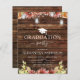 Budget Rustic Country Outdoors on Dark Wood with Burgundy, Orange and Yellow Sunflower with Mason Jars on String Light Automne ou Fall Class of 2022 High School or College Graduation Party Invitations - comprend une belle et élégante typographie de script pour la fête d'anniversaire spéciale.