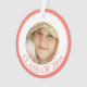 Créez votre propre ornement de garde d'images haut de gamme dans ce design chic de graduation rose corail et blanc avec une touche de faux or. L'avant présente du texte rose "Classe de" pour vous de customiser avec l'année, puis ajouter votre photo dans le design. L'envers a un faux tableau de mortier en or et un design casquette de goût où l'année de graduation peut être incluse, avec le nom de l'école et le nom de votre diplômé. Ce ornement de graduation de gardien en en rose corail vivant peut être mélangé et jumelé avec des articles de graduation plus stylisés disponibles exclusivement dans ma boutique.