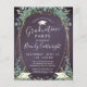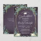 Belles invitations de remise de diplômes non-photo et économiques imprimées sur un papier léger de 4,5 x 5,6 pouces avec eucalyptus aquarelle et verdure avec accents de parties scintillant d'or, casquettes de graduation ou mortiers blanc et typographie de script moderne et chic écrit à la main contre un arrière - plan violet brossé. Idéal pour les budgets modérés et les livraisons à la main aux clients. ASSISTANCE : Pour obtenir de l'aide sur la modification/la personnalisation de la conception, le changement de couleur, le transfert de la conception vers un autre produit ou si vous souhaitez coordonner des éléments, contactez le concepteur AVANT DE COMMANDER via l'onglet MESSAGE Conversation Zazzle ou par courriel à l'adresse makeitaboutyoustore@gmail.com.