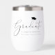 Un élégant tumeur thermique pour trinquer et célébrer le diplômé. "Graduate" est écrit dans un script moderne chic avec un grand casquette sur le dessus. Personnalisez avec leur nom, école et année de classe.