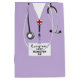 Sacoche-cadeau unique pour infirmière avec gommages lavande, stéthoscope et un grand faste. Modifier le texte pour ajouter le nom de l'infirmière.