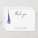 Carte de remerciements de thème de graduation simple avec espace vide pour écrire des messages manuscrits au milieu. Il y a une illustration d'un moule bleu sur le côté.