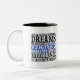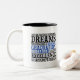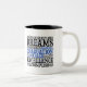 Graduation Mot Cloud Coffee Mug-Un mot décoratif nuage mug avec des charges et des charges de mots de texte relatifs à la graduation. Les couleurs sont des textes noirs et bleus dans des styles de police assortis sur un arrière - plan blanc uni.