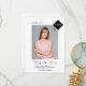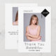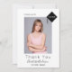Un carte de remerciements photo de diplôme. Un arrière - plan blanc classique. Sur le devant : Personnalisez et ajoutez une photo de taille verticale, un nom, l'année 20xx (ou toute année) et le nom de l'école. Avec le texte : Diplômé et Merci. Décoré d'une casquette abstraite moderne en noir avec l'année intérieure. Retour : ajoutez votre 2ème photo, votre note de remerciement et votre nom. Le nom est écrit avec un script de style moderne écrit à la main.