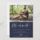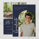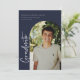 Faire-part/invitation de graduation de photo avec cadre d'arc, scénarisé moderne "diplômé". Caractéristiques, typographie blanche sur arrière - plans bleu marine.