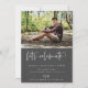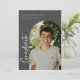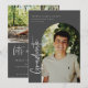 Faire-part/invitation de graduation de photo avec cadre d'arc, scénarisé moderne "diplômé". Caractéristiques, typographie blanche sur arrière - plans gris foncé.