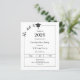 A modern and stylish black and white invitation for a graduation party for a guy. Text: He did it! with a heart. Decorated with a black graduation cap. Personalize and add a name and the details.