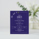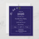 A modern and stylish dark blue and white invitation for a graduation party for a guy. Text: He did it. Decorated with a black graduation cap. Personalize and add a name and the details.