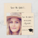 On front: Add your own vertical size photo of the graduate. A chic champagne colored background, black text. Templates for a name and date. The name and the text: Save the Date are written with a modern hand lettered style script. With a cap, tassel topper.