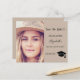 On front: Add your own vertical size photo of the graduate. A chic mocha, beige colored background, black text. Templates for a name and date. The name and the text: Save the Date are written with a modern hand lettered style script. With a cap, tassel topper.