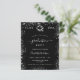 Une invitation moderne et élégante à la remise des diplômes. Un arrière - plan noir décoré de poussière de parties scintillant fausse argent. Personnalisez et ajoutez un nom, une année et des détails.