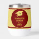 Couleurs de l'école Maron et Gold, bouchons de graduation or jetés dans l'air pour lui ou elle. Belle fête de remise de diplômes des produits de papier personnalisés pour une grande fête pour un diplômé d'un lycée, d'un collège ou d'une université avec des couleurs de l'école de marron et d'or. Personnalisez avec l'année de diplôme, le nom du diplômé et le nom de l'école.
