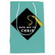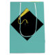 Sac cadeau de graduation créative avec design casquette noir et or créatif sur arrière - plan bleu turquoise. Pour personnaliser la modification du texte pour ajouter le nom de la bande.