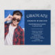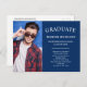 Faites savoir à votre famille et à vos amis à quel point vous êtes fier de votre diplômé avec cette photo faire-part/invitation de graduation bleu et blanc de la marine moderne. Customisé avec votre portrait principal ou autre photo préférée et toutes vos informations. Cette carte est conçue pour être tout ce dont vous avez besoin, de la faire-part photo à l'invitation de cérémonie de remise de diplômes, en passant par l'invitation à la fête de remise de diplômes. Il dispose également d'un espace pour énumérer les réalisations de votre diplômé et leurs plans pour l'avenir.