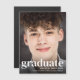 Annoncez les réalisations de votre diplômé grâce à cet aimant de faire-part moderne. Le devant est rempli de sa photo préférée. "gradué" est écrit en haut de la photographie en gras de typographie blanche. Customisez avec son nom, son école et son année de classe.