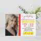 Invitation de graduation moderne rouge et jaune - 2 Photo sur White Repeating Class Année + photo Retour