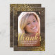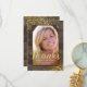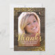 Envoyez un glamour rustique et une fausse carte de remerciements à votre famille et à vos amis pour leurs cadeaux de remise de diplômes. Ce design présente votre photo sur le devant avec un script moderne qui lit. "Merci" en fausse typographie or avec votre nom et classe/année ci-dessous. Le dos de la carte est en bois rustique avec un message que vous pouvez personnaliser ou supprimer. Conçu par l'artiste ©Tim Coffey Photography © Storytree Studios, Stanford, CA.