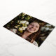 Célébrez votre diplômé avec cette simple invitation photo avec une police à feuille d'or scénarisée avec tassel. Options pour la photo à l'arrière avec les détails de la fête de remise des diplômes