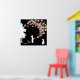 garden graffiti urban throw pillow inspired by banksy's famous graffiti designs this fun silhouette image features a little girl with garden hose that is spraying retro circle bubbles in colourful red and green and white. Set in a silhouette garden with tree and family dog . On the reverse are more floating bubbles and a white dove. Background is black but can be changed to suit your own home decor and soft furnishings. Click CUSTOMIZE IT>EDIT>BACKGROUND anc choose the color from the menu