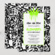 Démarrez la célébration avec une œuvre d'art urbain saisissante qui indique instantanément aux invités la date. Le devant présente un champ dense de graffiti à lignes noires sur une toile blanche croquante, couronnée d'une couronne verte de style dripping en haut. En dessous, un large rectangle blanc délimité par une fine bordure verte contient tous les détails de la fête, transformant cette invitation d'anniversaire "save the date" en un annonce élégante qui se sent fraîche pour tout groupe d'âge. 🎉✨