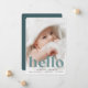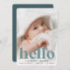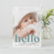 Un design faire-part de naissance doux et élégant avec un fond plein de saignement photo horizontale ou orientée paysage avec "bienvenue" recouvert de lettrage rétro sur le fond. Le nom et les statistiques de naissance de votre bébé apparaissent en dessous. Ajoutez une photo supplémentaire à l'arrière, accompagnée d'un message personnel.