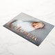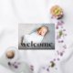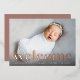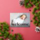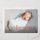 Les cartes de faire-part de naissance fraîches et modernes disposent d'une photo horizontale à fond saigné ou orientée paysage avec "bienvenue" recouvert de papier rose en feuille d'or. Personnalisez avec le nom du bébé et les statistiques de naissance en dessous, et ajoutez trois photos supplémentaires à l'arrière, ainsi qu'un message personnel.