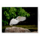 A Great Egret atterrissant sur un rocher à Downing Park à Newburgh, New York. Cette photo a été prise par Debbie Quick of Debs Creative Images. Pour voir d'autres photos de Debbie, visitez son site web à : www.debscreativeimages.com