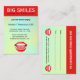 © Sunny Mars Designs. Grand Bouche Grand Dentiste Rendez-vous Rappel Cartes de visite - Modèle de carte de visite dentaire verticale personnalisable avec une grande bouche rouge ouverte large brillante, un sourire brillant, des lèvres rouges brillantes et des dents blanches perlées parfaitement propres. Parfait pour les dentistes, les orthodontistes, les hygiénistes, les chirurgiens dentaires cosmétiques et les infirmières ou tout autre professionnel dans l'orthodontie des soins de santé ou de la dentisterie. Les sections ci-dessous contiennent d'autres articles de papeterie, de marketing et de promotion pour les dentistes :