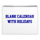 Dans grand bleu Blank Calendar With Holidays with blue wire, vous pouvez trouver du texte personnalisable bleu en première page et des événements et fêtes aux États-Unis sont ajoutés aussi.