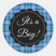"C'est un garçon !" autocollants de baby shower pour les annonces de naissance ou les invitations pour les douches pour bébés. Plaid bleu.