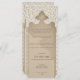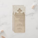 Cette faire-part de mariage est un hommage à l'architecture islamique exquise, avec une arche magnifique comme une entrée symbolique à une union joyeuse. Le design est une splendide tapisserie de tons crème et taupe, accentuée par l'élégance d'un emblème calligraphique en albâtre au sommet de l'arc. Des colonnes de Chevron dans des tons subtils d'avoine et de kaki encadrent la merveille architecturale, tandis qu'un arrière - plan de blé et de beige fournit une toile qui parle de classe intemporelle. L'arabesque tourbillonnante et les motifs floraux en ivoire et les éclats de feuilles d'or célèbrent un riche héritage, faisant de cette invitation un portail vers le nouveau commencement du couple dans un style qui honore le passé et embrasse l'avenir.