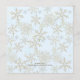 Menu de Noël en famille modèle avec décor de flocons de neige. Bleu clair avec texte bleu foncé, customiser avec un titre pour inclure les noms de famille (ou de famille), avec la date de l'événement au bas de la carte. Le paragraphe central énumère la nourriture et la boisson à servir, avec le nom du boulanger / chef à côté de chaque ligne. C'est optionnel, mais ça rend amusant. Utilisez des espaces pour remplir la zone de texte. L'aspect stratifié du dessin contient des flocons d'or comme arrière - plan du panneau qui contient le libellé. Montré sur un papier mis à jour qui est facile à modifier.