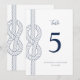 Ajoutez une touche nautique à votre décor de table d'accueil de mariage avec ces cartes numériques de grande taille (5'x7") design et moderne, avec un noeud de corde nautique sur le côté gauche, dans des couleurs classiques blanc et bleu marine. Trouvez les produits correspondants dans la collection, et n'hésitez pas à me contacter par l'intermédiaire de Zazzle Conversation pour des produits supplémentaires, d'autres couleurs ou des modifications de conception.