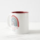 Une mignonne tasse de Noël fantaisiste pour grand-mère d'un petit-enfant (ou petits-enfants) avec un point de vue enfant, avec le Père Noël et l'arc-en-ciel de Noël. Personnalisez-vous pour les deux grands-parents ou pour un grand-parent célibataire. Ajoutez les noms de vos petits-enfants. Des arcs-en-ciel et des coeurs bleu-rouge.