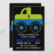 Un grand camion cool bleu et vert monstre avec l'âge de votre enfant sur la porte personnalisée fête d'anniversaire modèle d'invitation. Il suffit de remplir les détails de la fête pour cette invitation personnalisée.